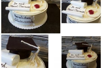 Zur bestandenen Doktorarbeit…. Torte ohne Fondant. Der Hut aus Schokoalde. Rolle aus Esspapier.