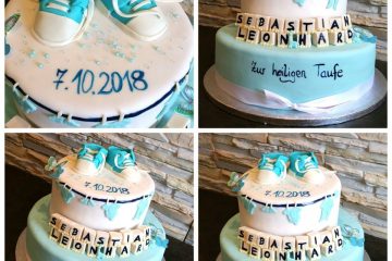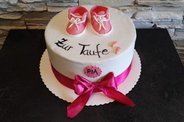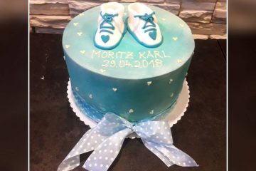 Babyschuhe auf der Torte , der besondere Hingucker. Torte mit und ohne Fondantüberzug möglich. Viele Geschmacksrichtungen möglich.