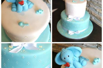 Tauftorte 2-stöckig mit süßem handmodelliertem Elefanten . Jeder Stock bekommt gerne seine eigene Füllung.