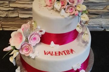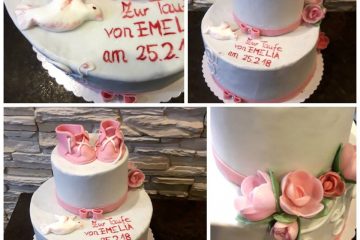 2-stöckige Tauftorte mit Zuckerblumen. Auch zum Geburtstag eine schöne Idee.