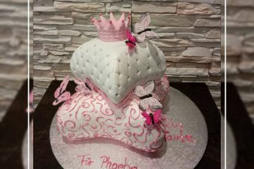 Eine ganz andere Form… 2-stöckige Torte in Kissen-Optik. Mit Krönchen für die kleine Prinzessin